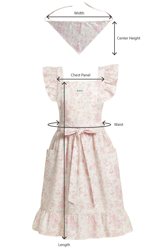Designed in one size, the apron features adjustable cross-back straps that slide through a D-ring for a comfortable, flexible fit. The waist ribbons can be tied in the front or back, depending on your preference.